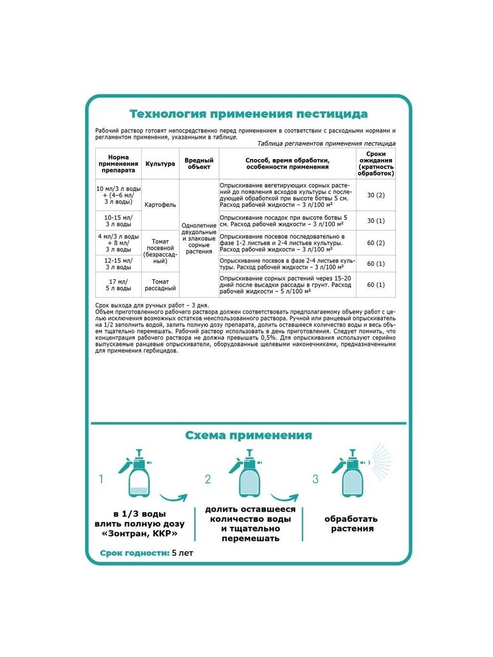 - Избирательное действие: Защищает картофель и томаты, воздействуя только на сорняки.