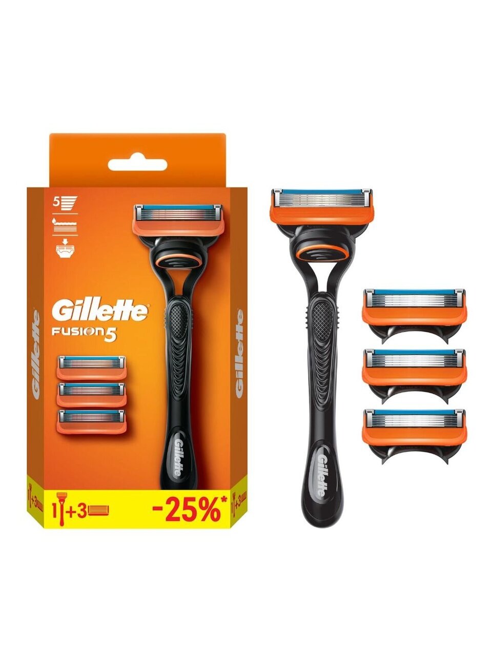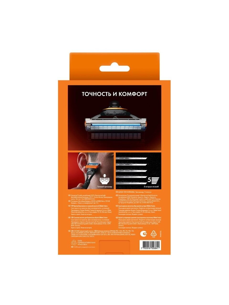Бритвенный станок Gillette Fusion5 с 5 лезвиями с уменьшающим трение покрытием обеспечивают бритье, которое вы едва почувствуете. Точный триммер на обратной стороне удобен для обработки труднодоступных мест, а также для ухода за бородой и усами. Смазывающая полоска-индикатор поблекнет, когда бритва перестанет обеспечивать оптимальный результат бритья.