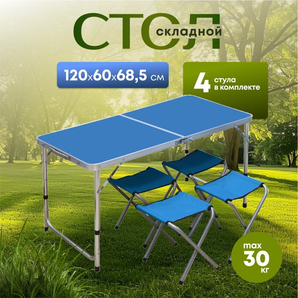 Вы можете приобрести «Стол складной металл, прямоугольный, 120х60х68.5 см, столешница МДФ, синий, YTFT013, 4 стула» и другие товары в нашем интернет-магазине в Коврове по низким ценам и с бесплатным самовывозом.