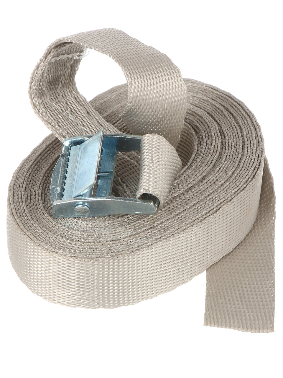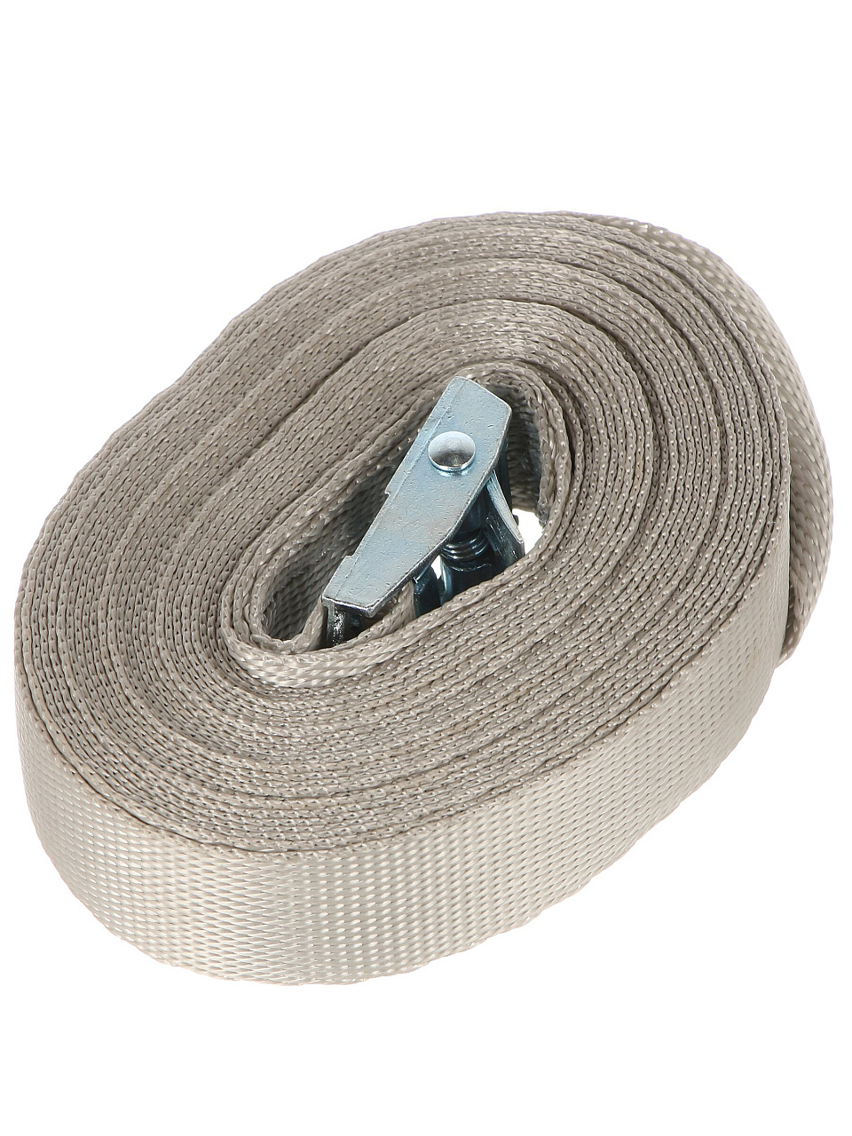 Ремень рассчитан на нагрузку до 250 кг, что подходит для крепления мебели, техники и других тяжёлых предметов. Кольцевой фиксатор обеспечивает надёжную фиксацию без проскальзывания даже при длительной транспортировке.