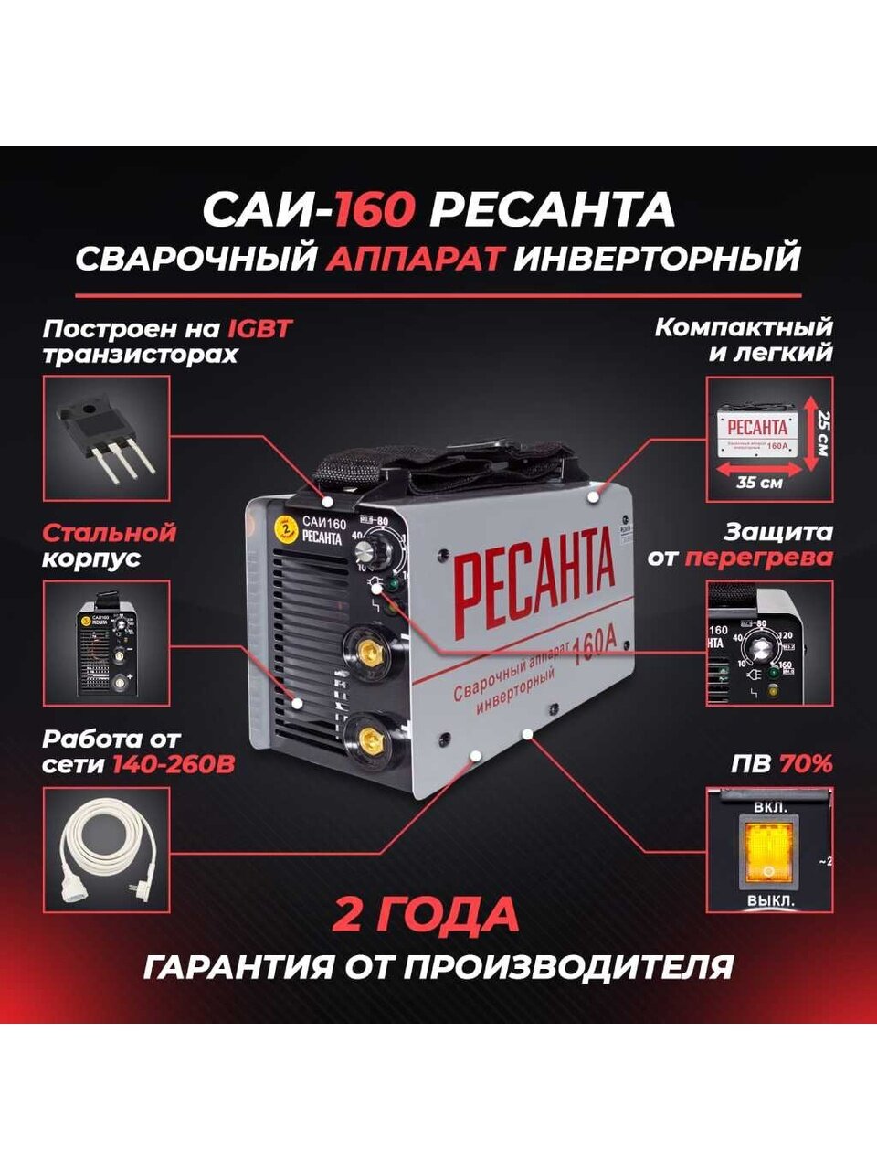 Вы можете приобрести «Сварочный аппарат инверторный, Ресанта, САИ-160, 6.5 кВт, 160 А, электрод» и другие товары в нашем интернет-магазине в Железногорске по низким ценам и с бесплатным самовывозом.
