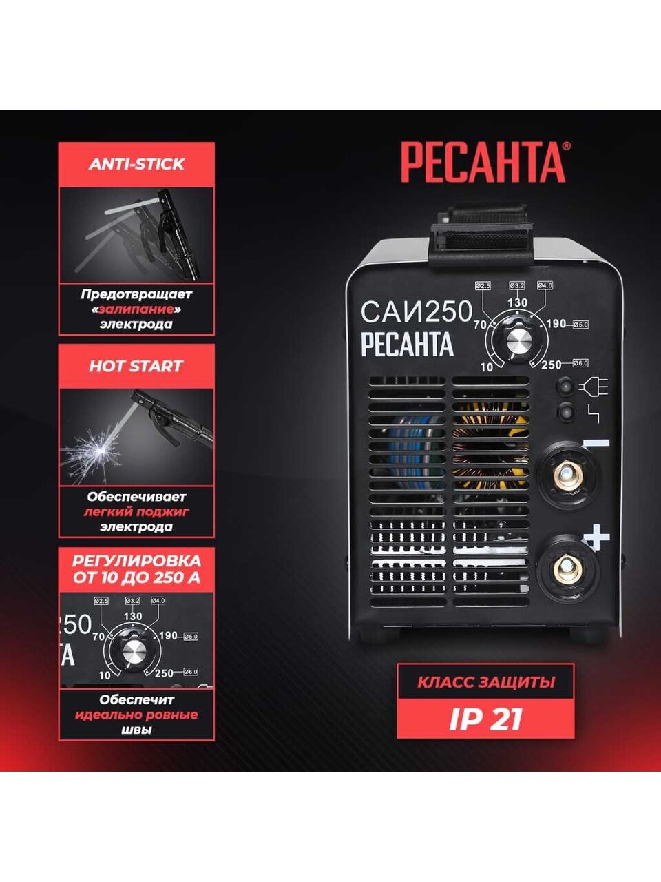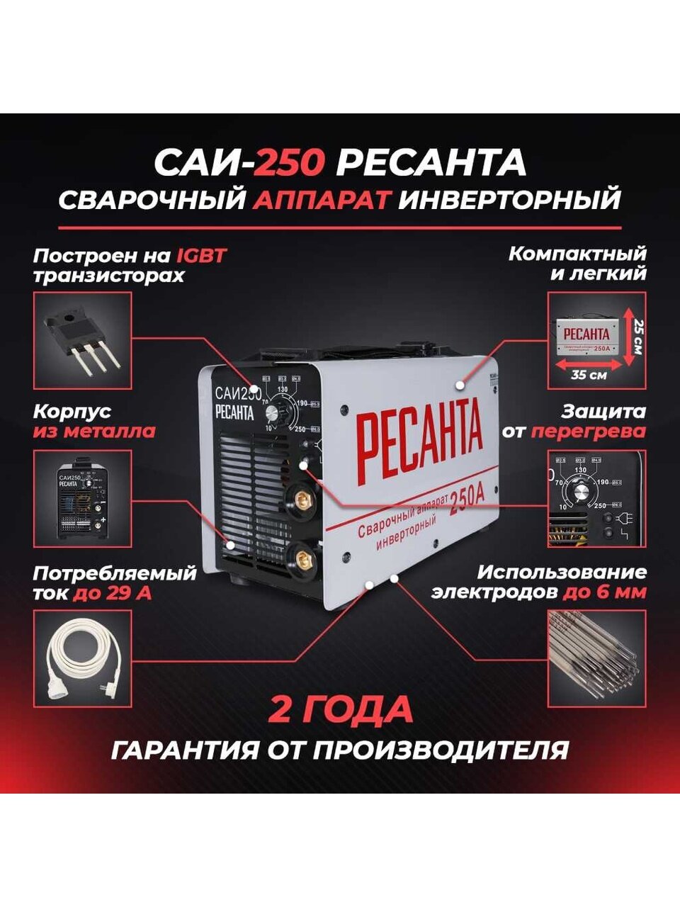 Аппарат Ресанта САИ-250 – Ваш незаменимый помощник при проведении сварочных работ. Его мощности вполне хватит для проведения любого типа сварки в частном доме или хозяйстве. Лёгкий вес и компактные размеры делают его идеальным аппаратом для использования в домашних условиях или небольшой мастерской. Даже если у Вас не очень большой опыт в области сварки, Вы с легкостью освоите этот простой и удобный аппарат, который является эталоном на рынке сварки.