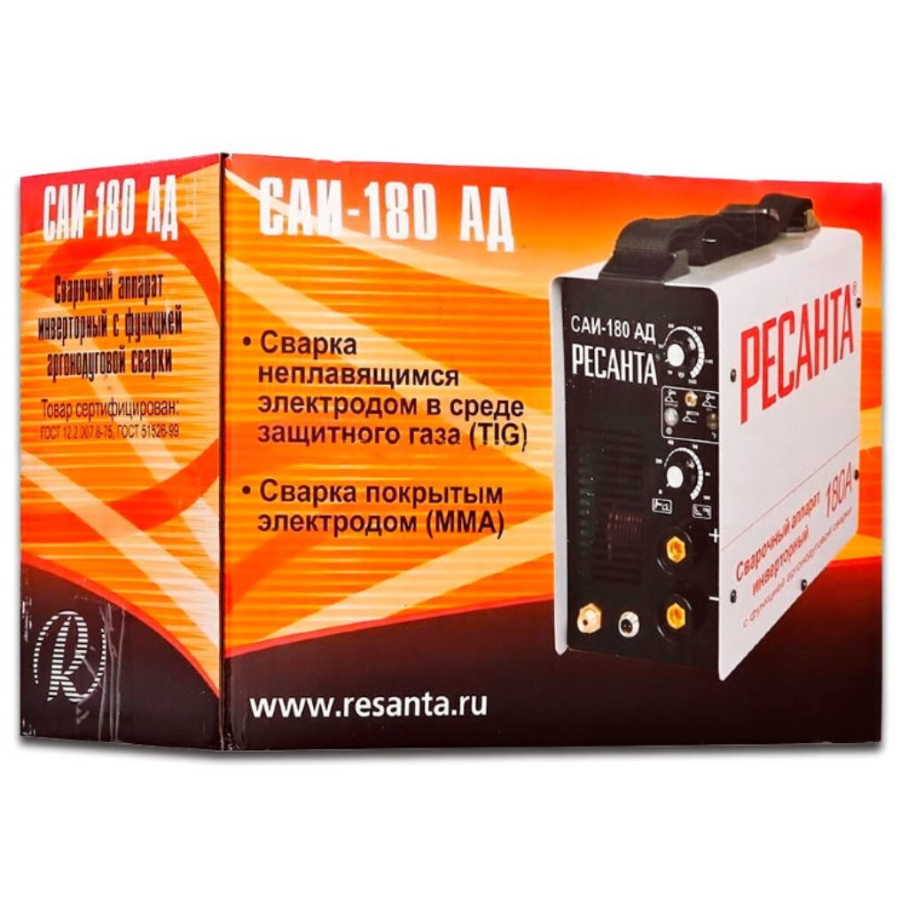 - Инверторный сварочный аппарат Ресанта САИ-180 АД позволяет оператору использовать два сварочных режима: аргонно-дуговой и ручная сварка при помощи электродов.