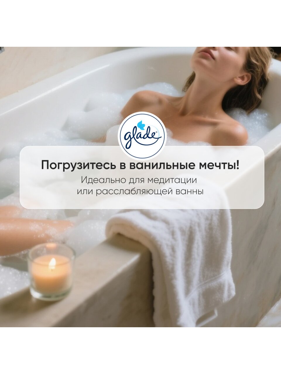 - Уникальный аромат ванили от Glade: расслабляющая атмосфера для отдыха и праздников.