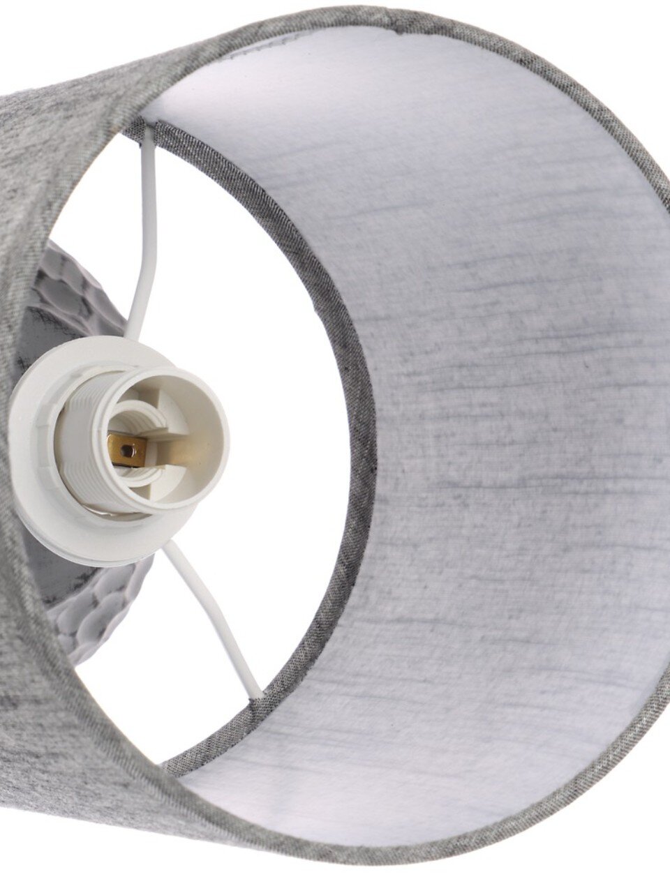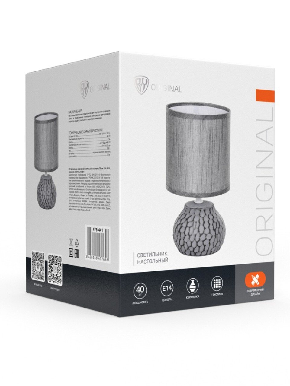 - Современный дизайн: гармоничное сочетание керамической базы и текстильного абажура в трендовом графитовом цвете.