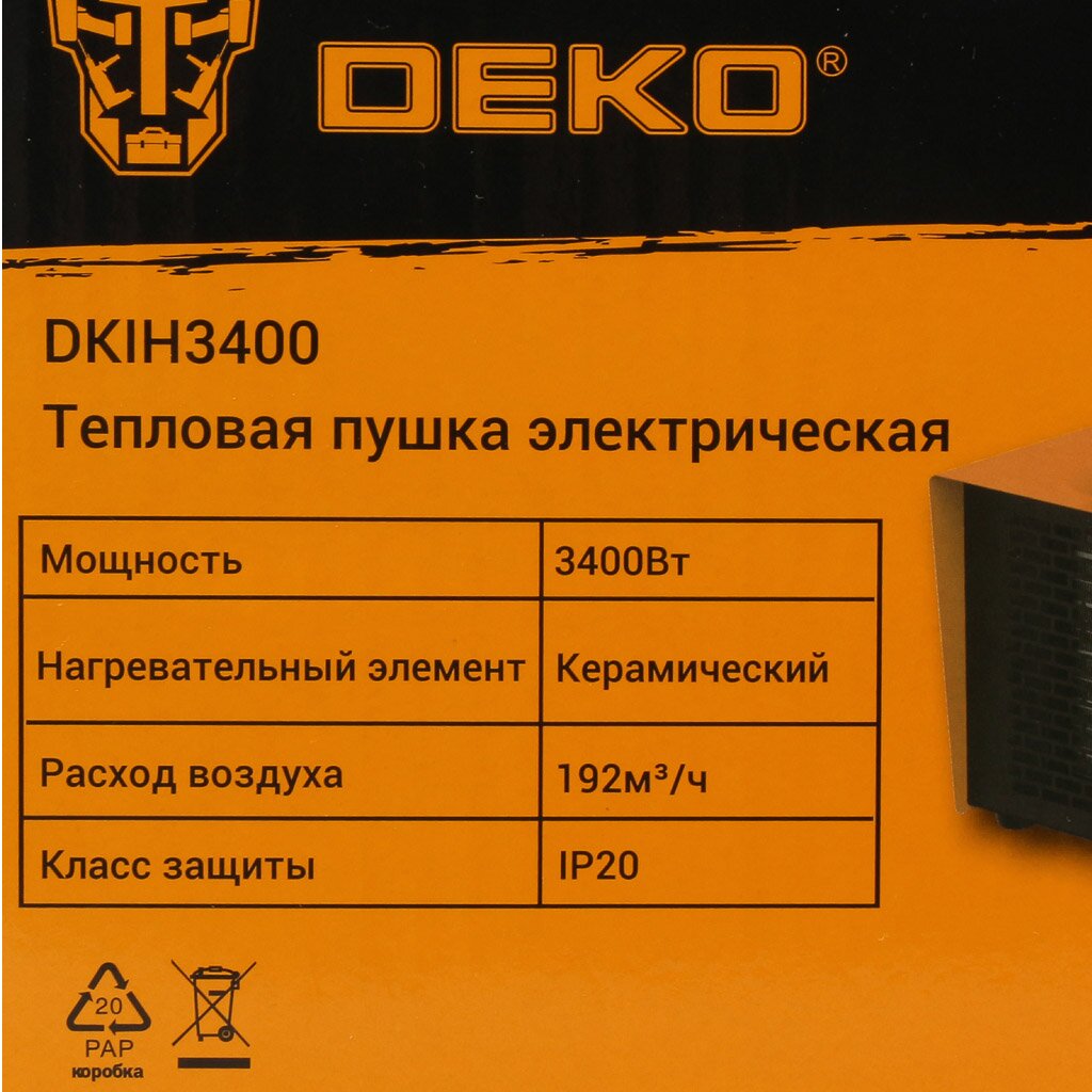 Вы можете приобрести «Пушка тепловая электрическая, Deko, DKIH3400, 3.4 кВт, 192 м³/ч, керамический элемент, квадратная, 080-1013» и другие товары в нашем интернет-магазине в Россоши по низким ценам и с бесплатным самовывозом.