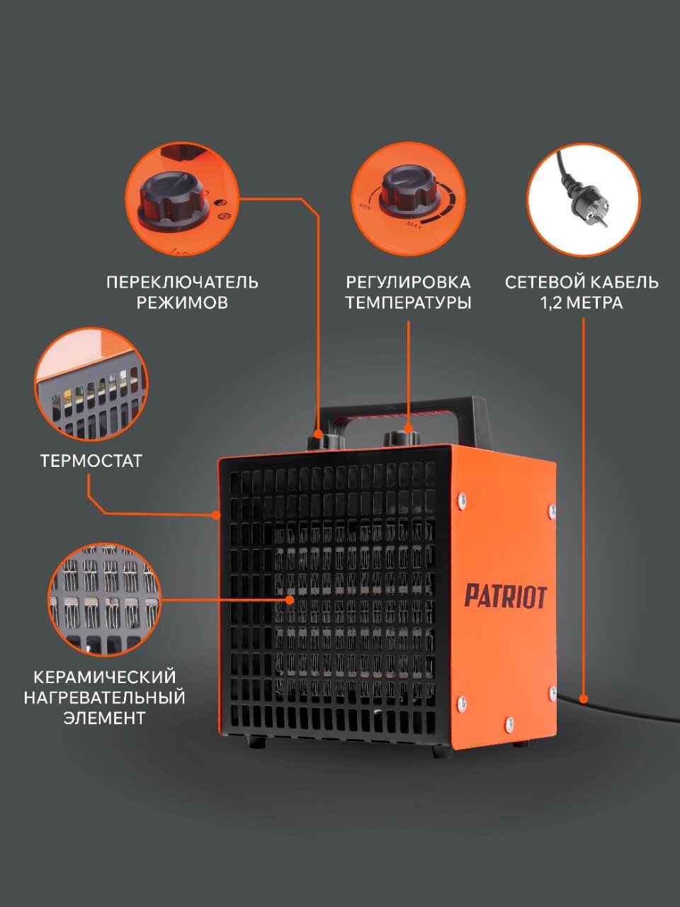 Закажите электрическую тепловую пушку Patriot PT Q 3S прямо сейчас — получите гарантию производителя, быструю доставку и возможность купить недорого эффективное решение для обогрева вашего дома или дачи.