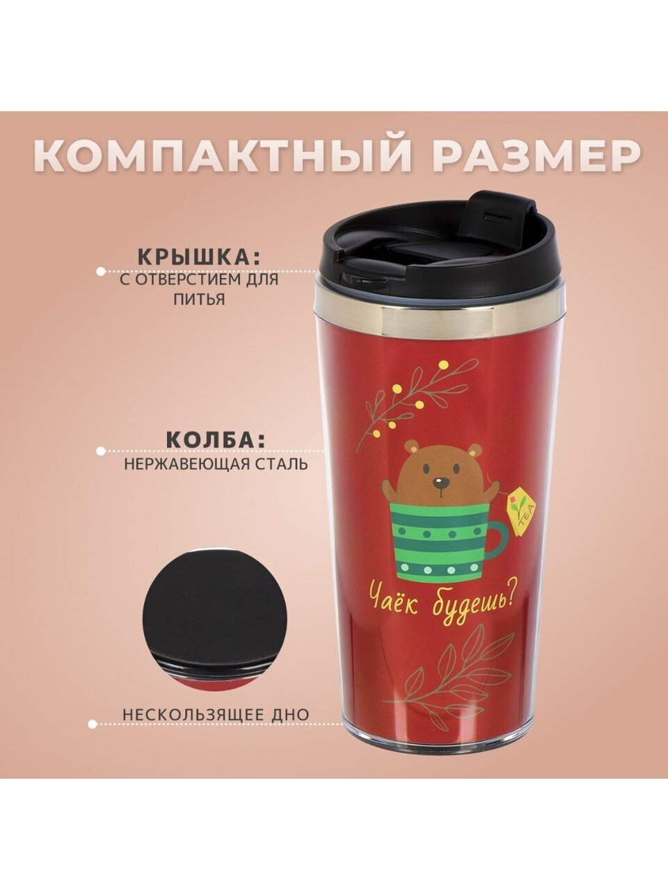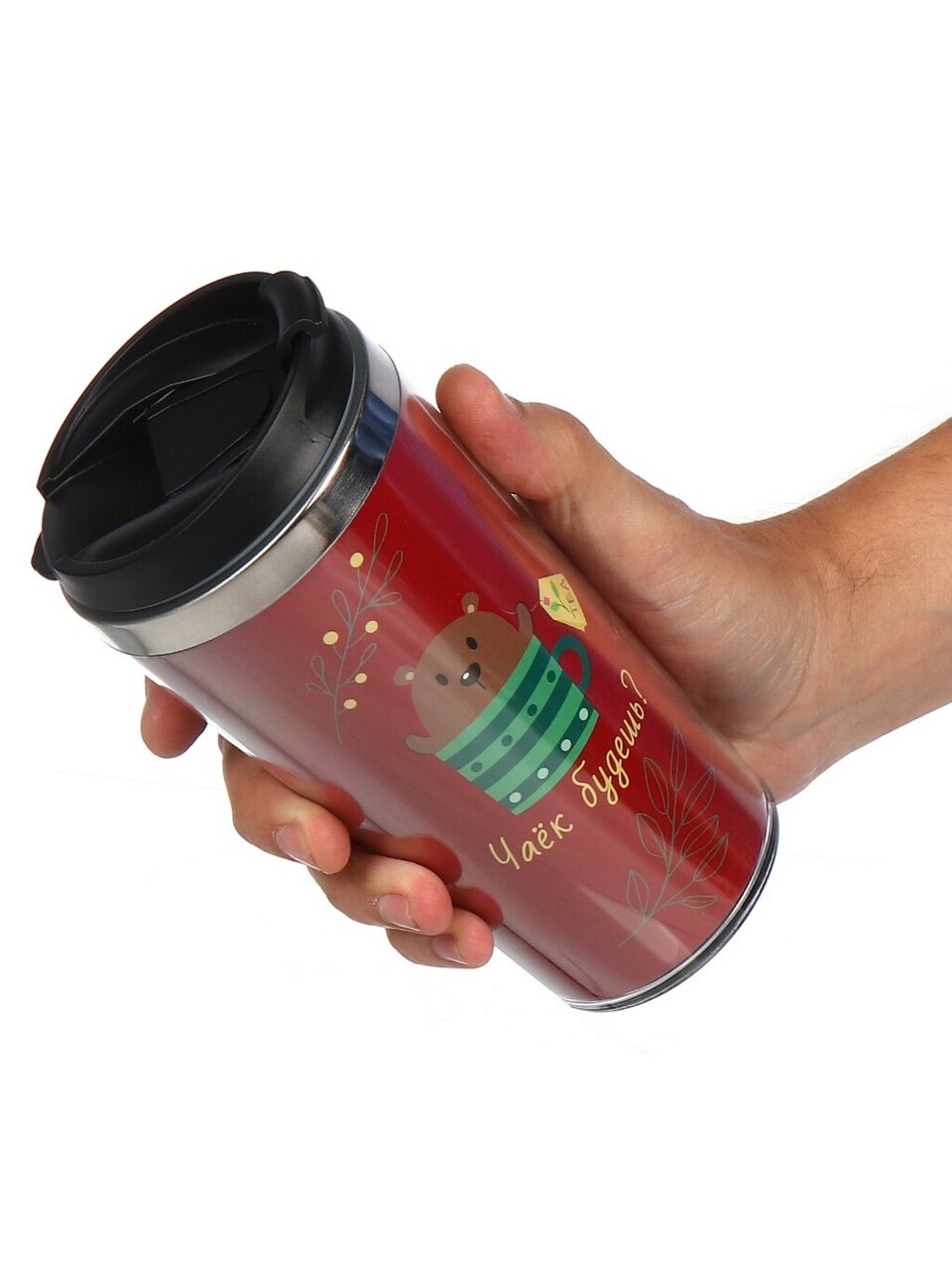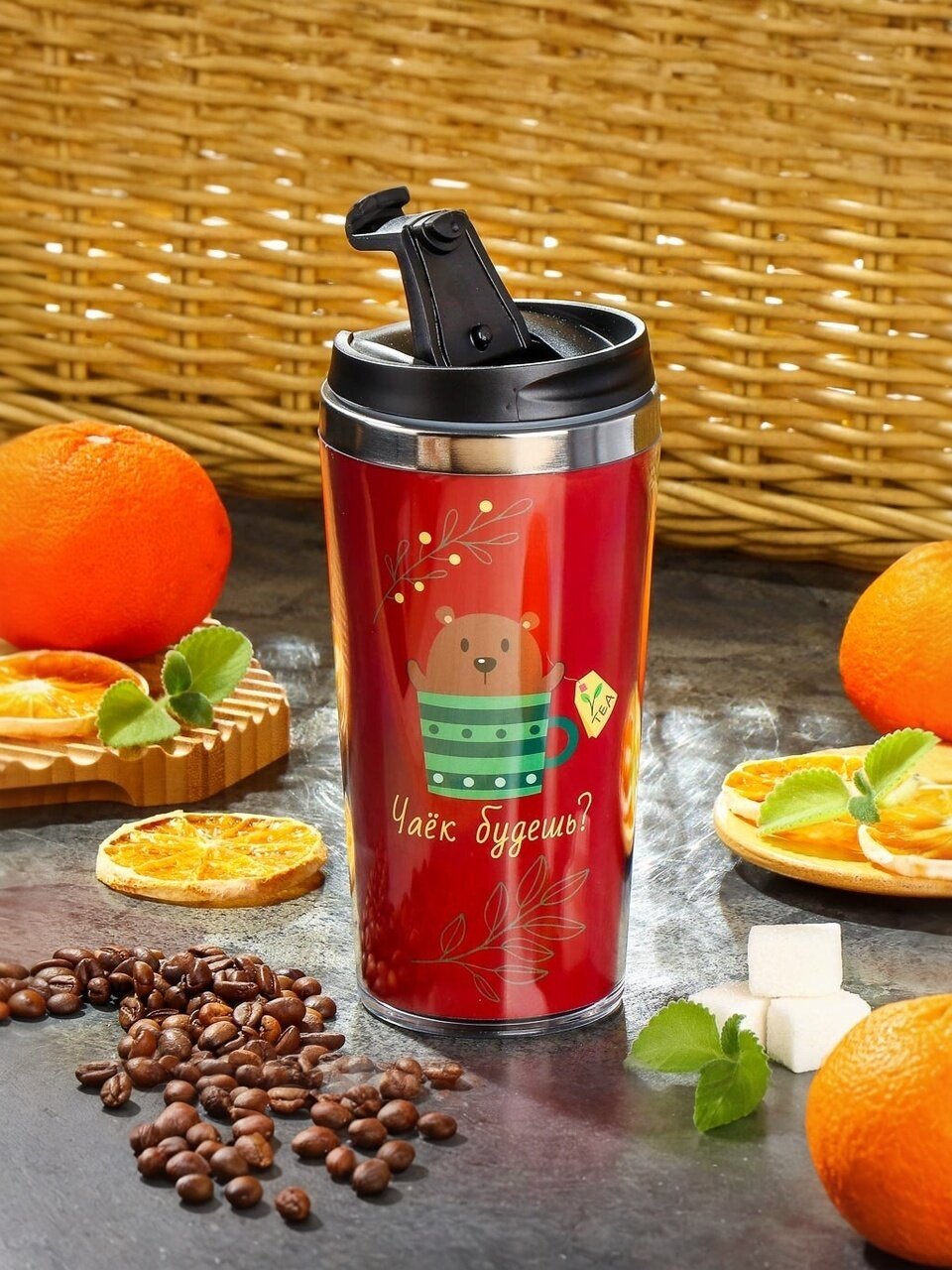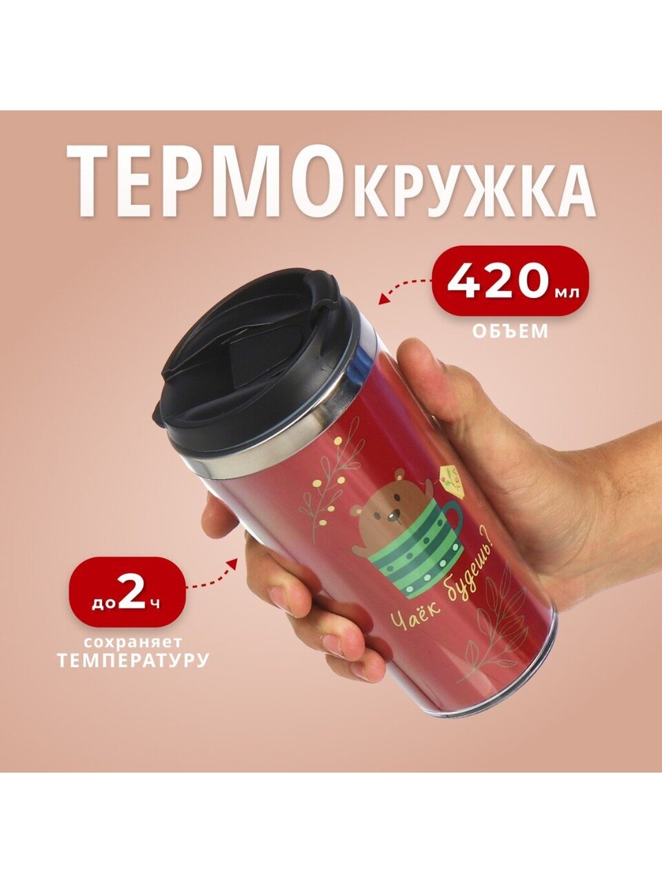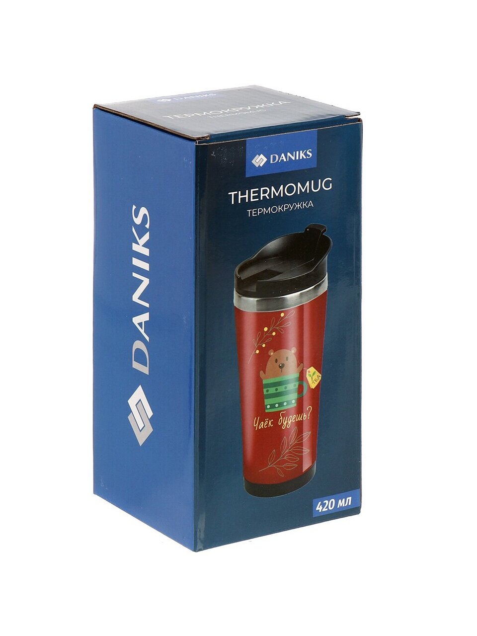 Термокружка Daniks "Чаек будешь", 0.42 л: сохраняет напитки горячими до 2 часов, стильный дизайн, прочная нержавеющая сталь — идеальный выбор для города и авто.