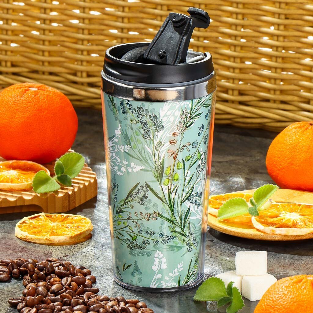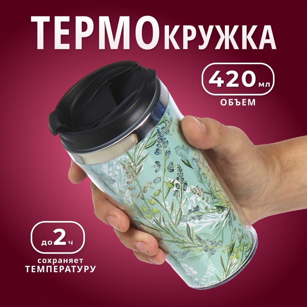 Термокружка Daniks 0.42 л "Цветы" — стильное решение для города, авто и дома: сохраняет напитки горячими или холодными до 2 часов, легкая, удобная, недорогая.