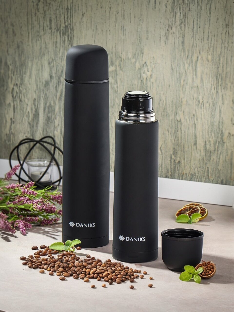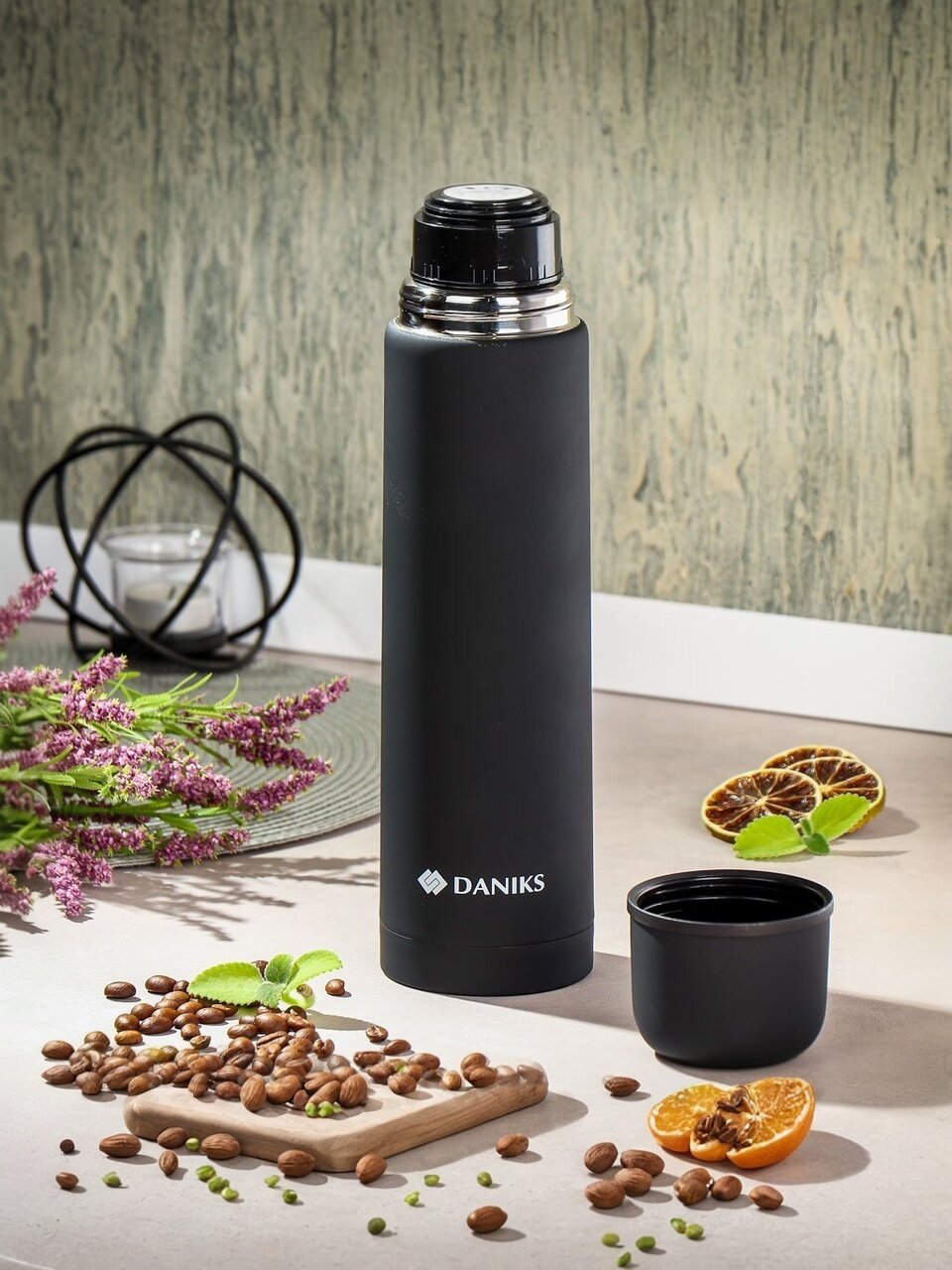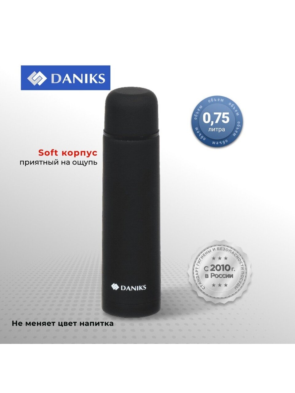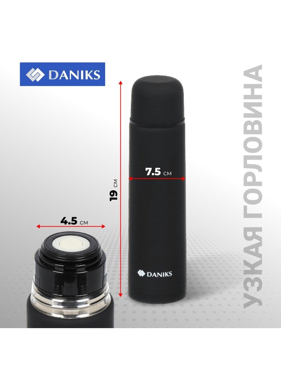 Термос Daniks 0.75 л из нержавеющей стали: держит тепло и холод до 24 часов, компактный, с узкой горловиной — идеальный выбор для города, дома и путешествий.
