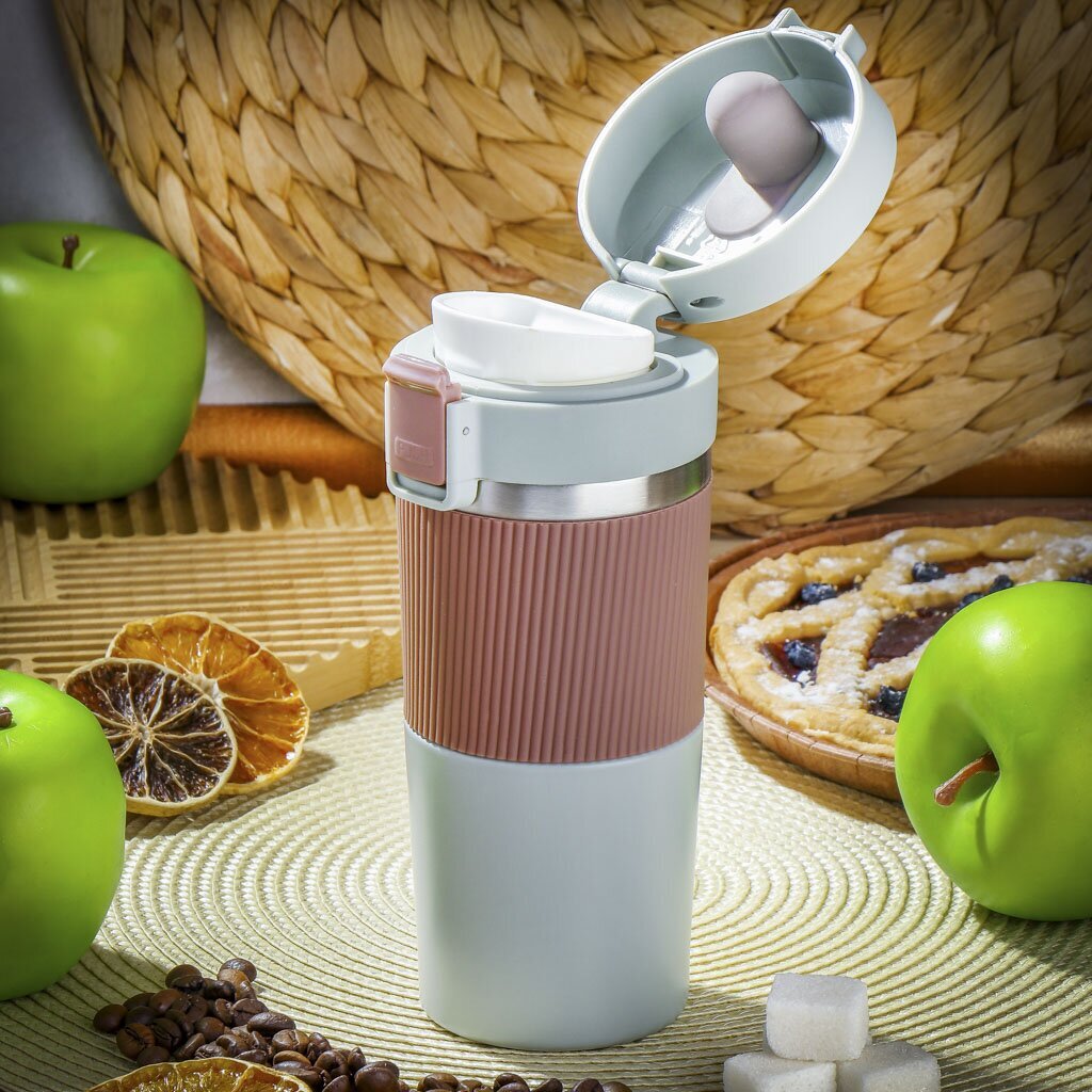 Термокружка сохраняет тепло и холод до 2 часов благодаря двойным стенкам из нержавеющей стали и герметичной крышке с защелкой.