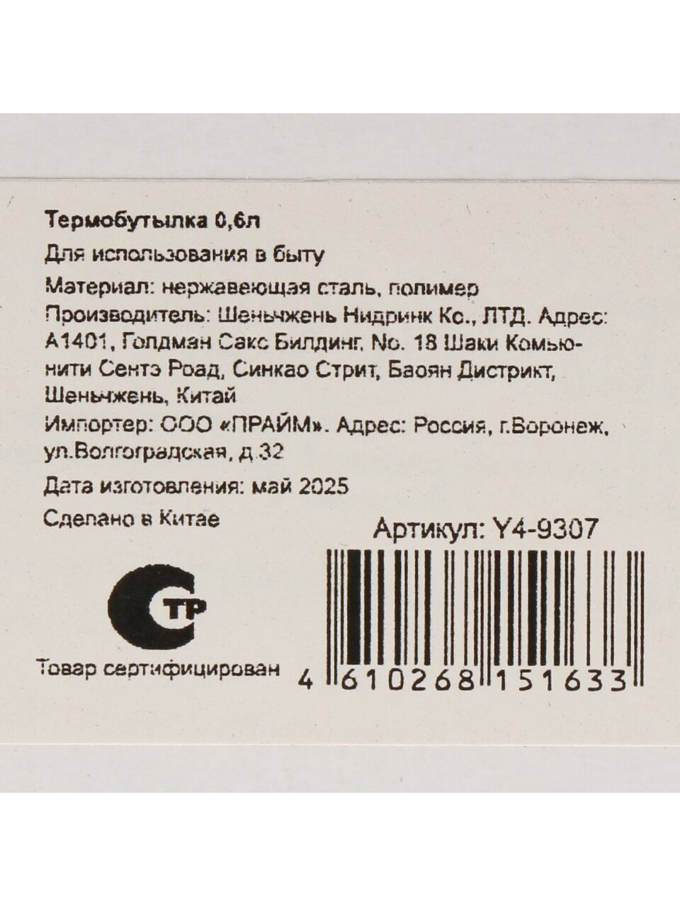 Вы можете приобрести «Термобутылка нержавеющая сталь, 0.6 л, черная, Y4-9307» и другие товары в нашем интернет-магазине в Краснодаре по низким ценам и с бесплатным самовывозом.