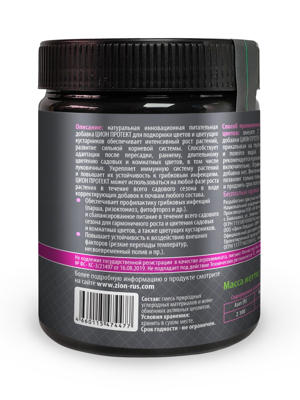 - Минеральная формула Protect Zion — комплексный уход: питание, стимуляция корней и профилактика заболеваний в одной упаковке