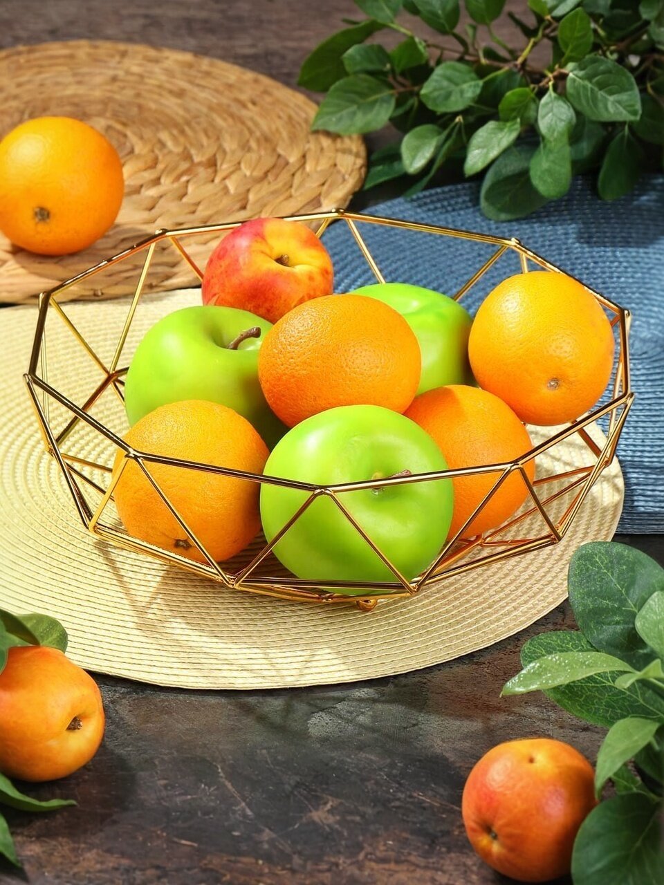 Стильная металлическая корзина для фруктов впишется в любой интерьер Вашего дома и всегда будет радовать Вас и Ваших гостей. Корзина имеет оригинальный геометрический дизайн.