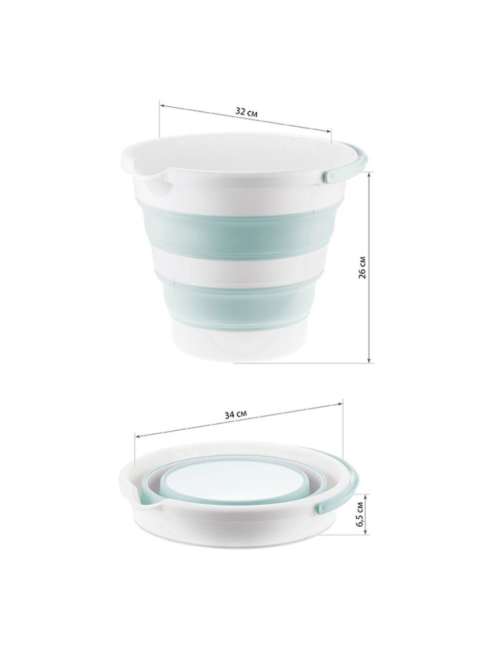 - экономия пространства: складная конструкция позволяет компактно хранить ведро в шкафу, ящике или багажнике автомобиля(размеры в сложенном виде: 32×34×6,5 см; размеры в разложенном виде: 32×34×26 см);