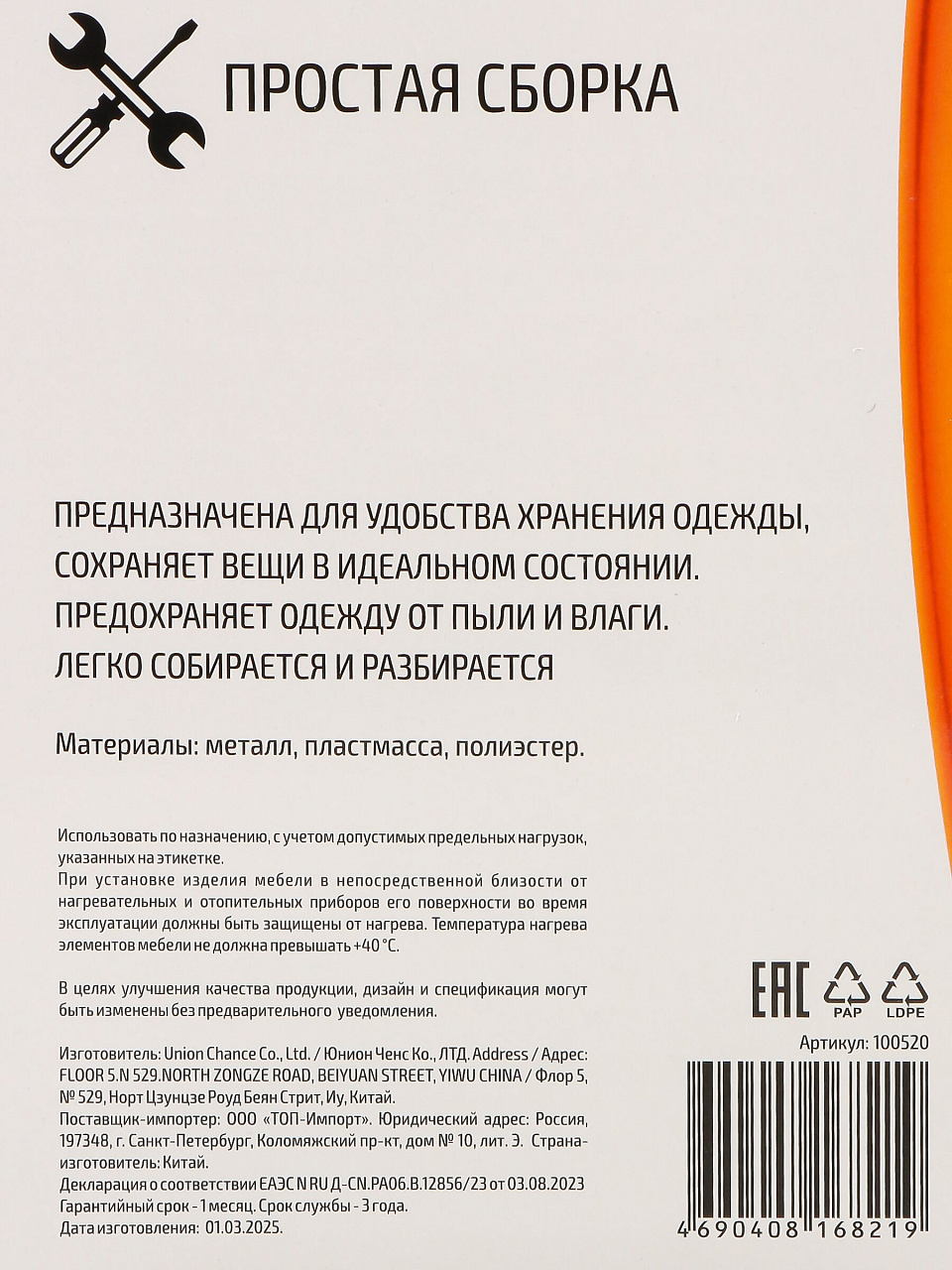 - Универсальна: подходит для дома, дачи, сезонного хранения, временных гардеробных и подарка