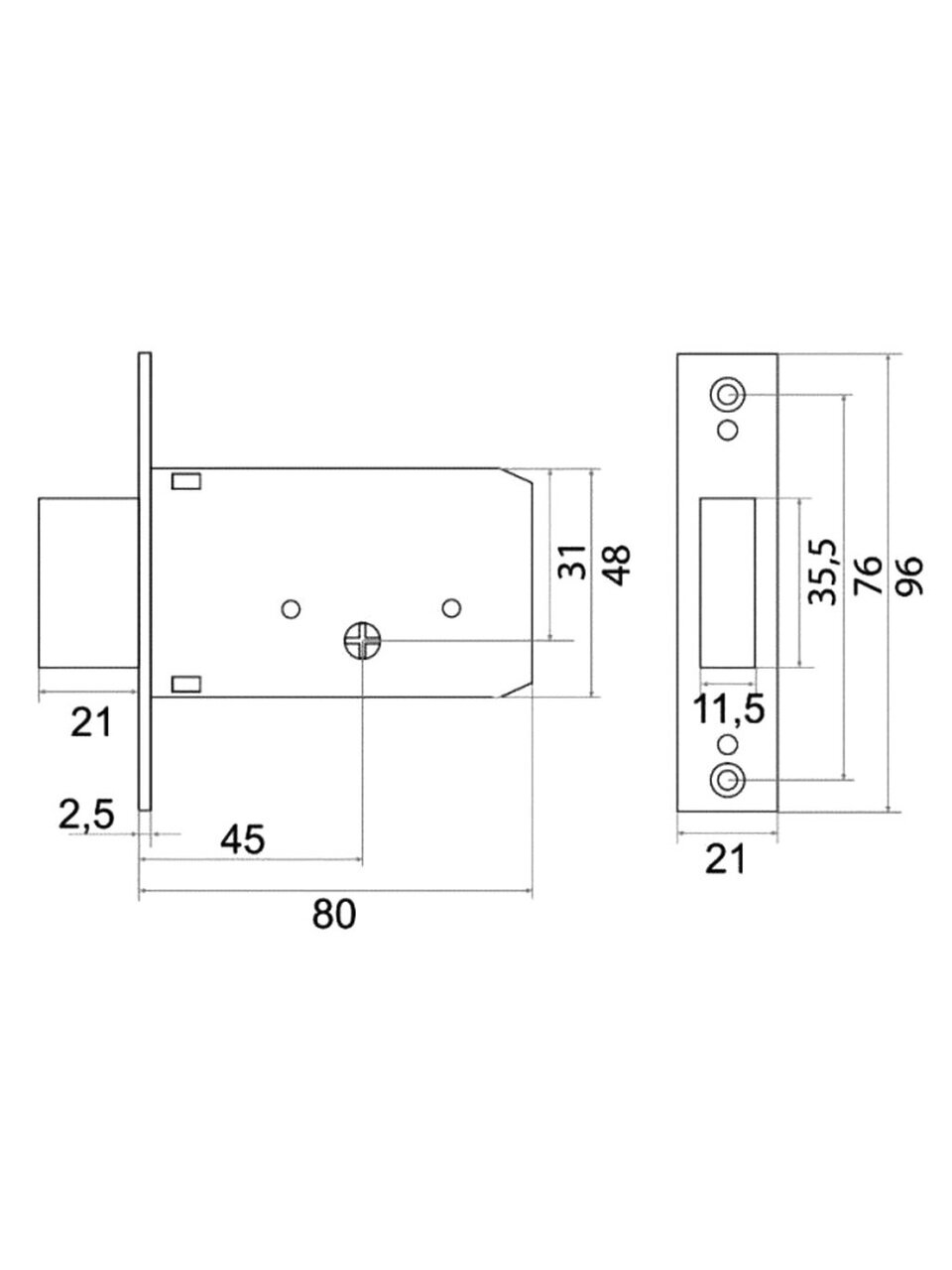 Замок врезной с цилиндром под крестообразный ключ. Надежная система обеспечивает высокую степень защиты. Материал замка и ключей — сталь, которая защищает механизм при неблагоприятных условиях эксплуатации, увеличивая срок службы.